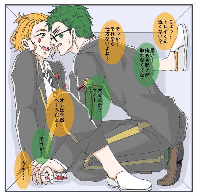 ツイステ 顔有り監督生と箱詰めハーツラビュル ケイト トレイ しゃけふれーくのイラスト